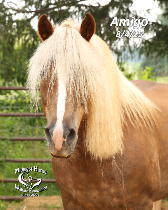 Victor has been here at MHWF and we would like to think that we have gotten to know him pretty well and can now make him available for adoption to the right home. Victor is very tall, as you can see, so he will need someone who likes them super tall. He is also a bit of a hard keeper, so he will need to be given grain daily. He also has string halt, so he can only be considered as a pasture pet or for very light riding only. By light riding we mean putzing around the yard or arena, no trail rides, no jumping, etc. Other than that, Victor is very sweet, not a mean bone in his body, loves people and attention and needs a person of his own. He is current on everything and was just trimmed today as we post this update, so he is ready to go for the season. Do you have a little room in your heart and in your herd for this gentle giant, if so, let us know!