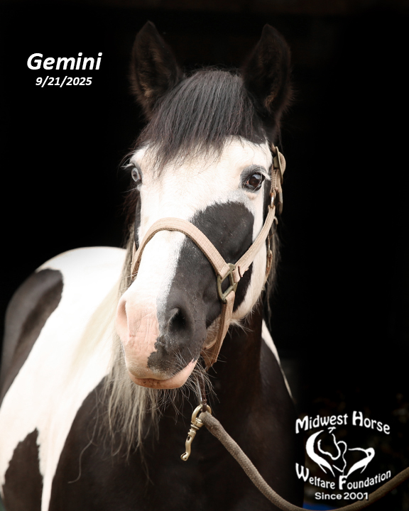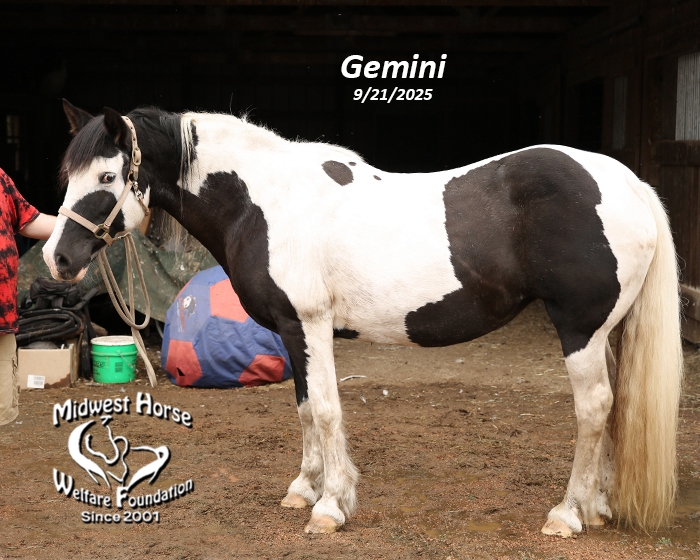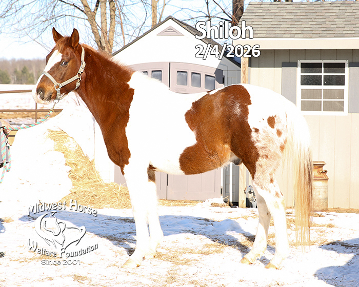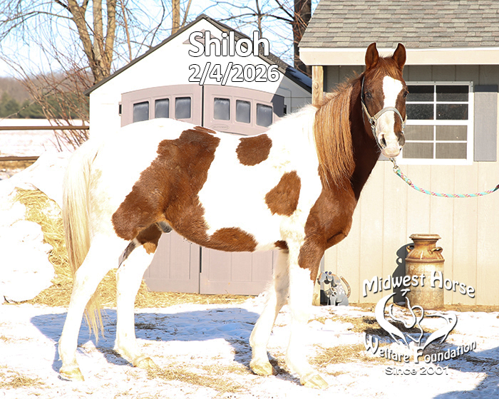 Peanuts is a true rescue that came to MHWF from a sad situation. He came in with two other horses, Snow and Ginger. All three of these horses were kept together, in the remains of a collapsed dairy barn, no pasture, no handling and no veterinary care for quite some time. Clark County authorities stepped in to deal with the situation, calling us to help. We went to the location with a trailer yesterday (1/7/2021) and brought them back with us. Peanuts is a BLM Mustang gelding, picked up at the Marshfield, WI sale back around 2006. He has not been handled or touched before or since, so he is a true wild Mustang. He stands at just under 14 hands tall. He is going to need absolutely everything, shots, Coggins, de-worming, trimming, dental work and a ton of training. Of course, there will be a lot of work to do before we can even address his health needs. On the positive side, he seems sound and is cute. Other than that, we have our work cut out for us for sure. We will be looking for a trainer for him, someone with experience training wild BLM Mustangs.